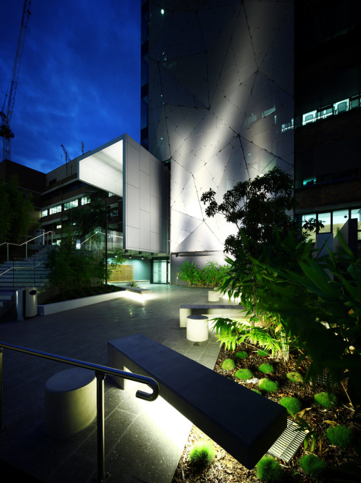 The exception to this was the level containing the Pathology Museum. Careful control of daylight was required to minimise the deterioration of the collection, therefore a panel system was placed strategically on the façade to protect the Museum’s pieces.