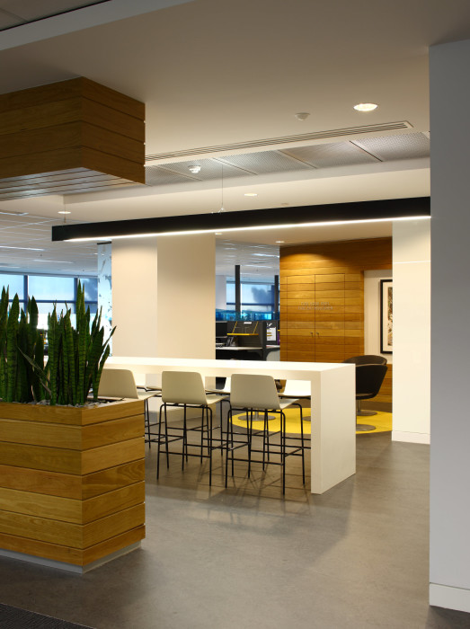 To meet the clients growing business needs, the design incorporated open plan workstation areas, meeting rooms, private offices, utility rooms, lunch rooms, collaboration areas and entrance lobbies. Materials were carefully selected for their environmental credentials and long-term durability, ensuring the fitout as a whole linked back to Sunsuper’s corporate branding.